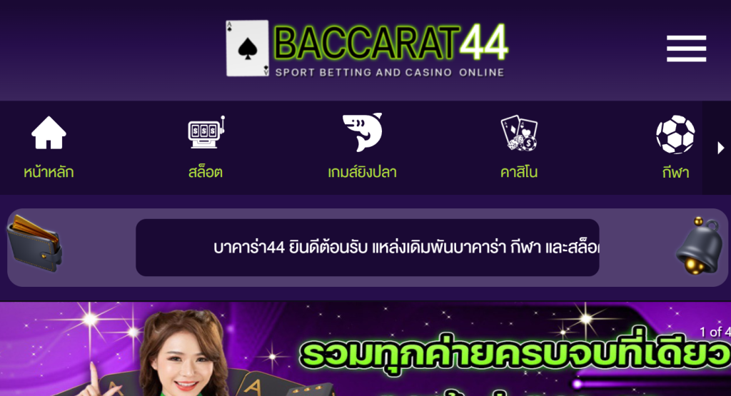 BACCARAT44 คือ เว็บพนันคาสิโน เกมสล็อต หวย แทงบอล เกมอีสปอร์ต ครบจบในที่เดียว ความสนุกสุดมันส์ในการเล่นเกมเดิมพันออนไลน์ ไม่ว่าจะเป็น บาคาร่า สล็อต เกมยิงปลา เกมโต๊ะ เกมกระดาน เกมกีฬา อีสปอร์ต และสิ่งที่น่าสนใจอีกมากมาย ระบบการทำงานทันสมัย การเงินมั่นคง ระบบฝากถอนอัตโนมัติที่รวดเร็วและง่ายต่อการใช้งาน ทำให้ผู้เล่นสามารถฝากเงินหรือถอนเงินได้ง่ายและไว เพิ่มความมั่นใจให้กับผู้เล่นในการเล่นเดิมพันพนันออนไลน์ พร้อมโปรโมชั่นสำหรับผู้เล่นใหม่และสมาชิกให้เลือกได้ตามใจตลอด เว็บไซต์คาสิโนออนไลน์แห่งนี้ เว็บเดียวมีให้เล่นทุกค่ายเกม ใช้บริการเกมคาสิโนออนไลน์ได้แบบไม่อั้นเลย และที่สำคัญ เป็นเว็บไซต์ตรงที่ให้บริการเกมคาสิโนที่ดีที่สุด จะทำให้ท่านสามารถทำกำไรจากการเล่นเกมคาสิโนได้แบบไม่จำกัด พร้อมกับทุกเกมคาสิโนของเราท่านจะสามารถทำกำไรได้แบบไม่มีค่าธรรมเนียม เล่นคาสิโนกับ BACCARAT44 ตอนนี้ รับโบนัส 20% ทันที โปรสุดแรงไปเลย ระบบฝากถอน Auto ทำงานได้ด้วยตัวเองได้เลย สะดวก รวดเร็ว ปลอดภัย พร้อมให้บริการ 24 ชั่วโมง